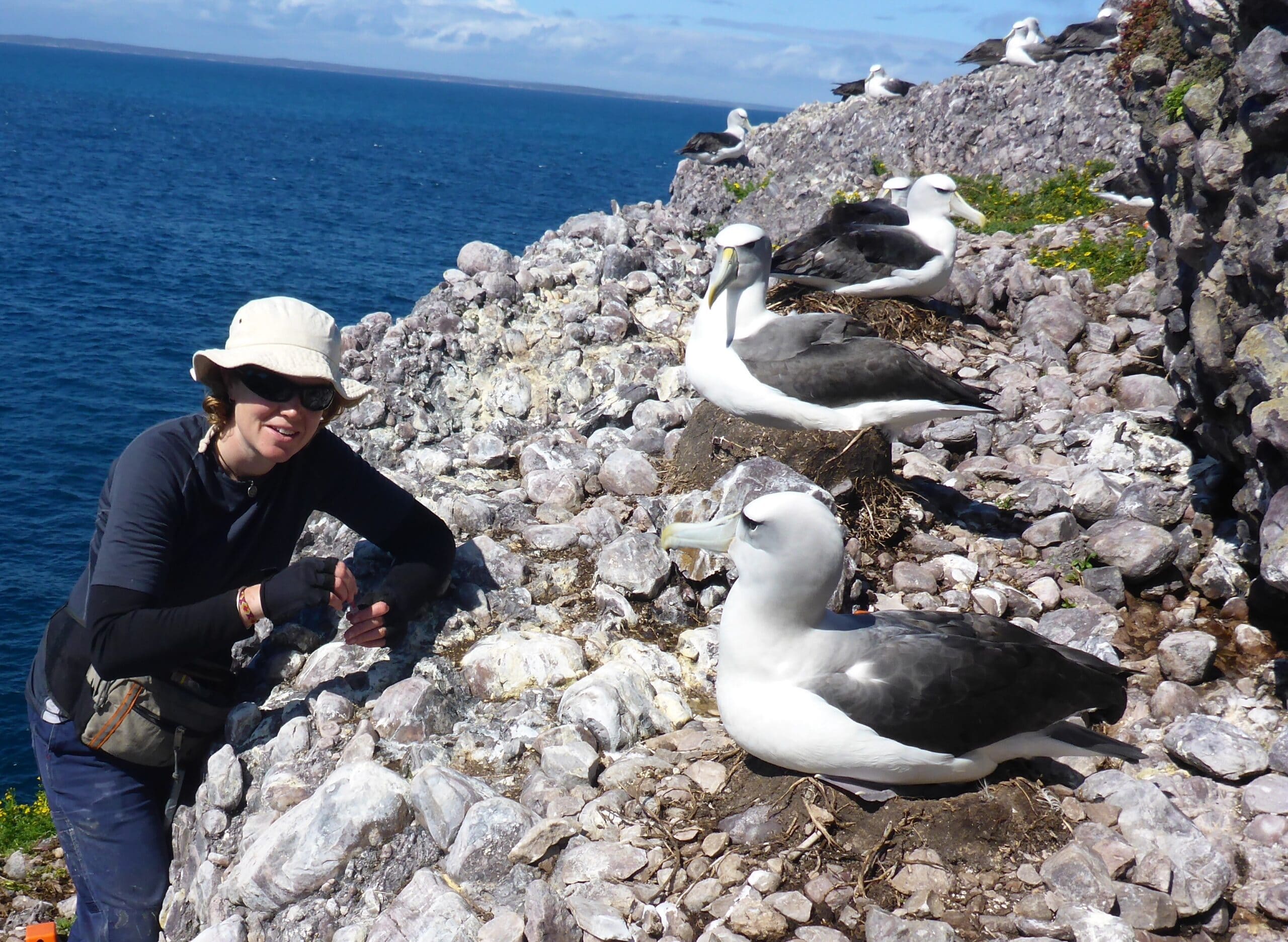 Researchers have spent endless days watching shy albatross on their nests on Albatross Island in Bass Strait—waiting for the distinctive sound of an albatross relieving itself – before darting in to collect a tiny precious sample of poo in a vial. Thanks to funding from the Fisheries Research and Development Corporations (FRDC), the Australian Fisheries Management Authority (AFMA) and the Tasmanian Albatross Fund, researchers from the Marine Conservation Program of the Tasmanian State Government, in collaboration with CSIRO, are now analysing hundreds of diet samples collected over the past four years.