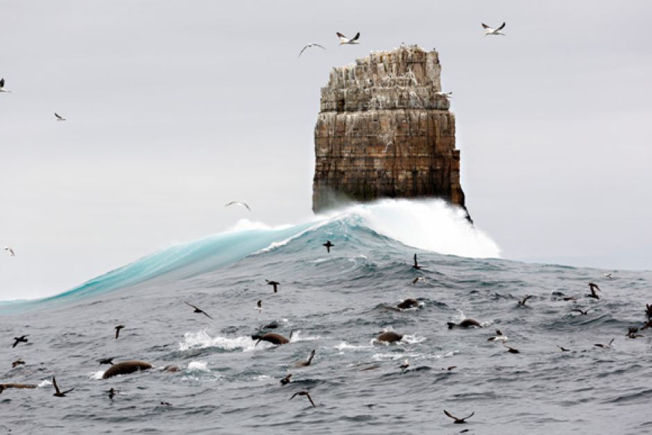 The shy albatross breeds nowhere else in the world apart from three tiny islands in Tasmania—Albatross Island in the north and Pedra Branca (pictured) and the Mewstone in the south. Unlike many of the other albatross species that travel widely across the Southern Oceans, most of the shy albatross population remains year-round within the south-east Australian shelf waters. They are truly Australia’s own.