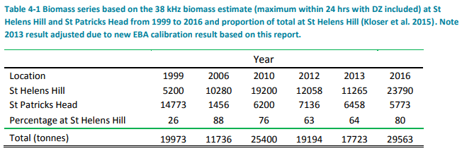 The results of a survey of the spawning biomass of orange roughy off eastern Tasmania have just been released. Under contract to SETFIA the Commonwealth Scientific and Industrial Research Organisation (CSIRO) surveyed St Patrick’s Head and St Helen’s Hill off eastern Tasmania in July 2016 where orange roughy aggregate to spawn. CSIRO use an acoustic optical system (AOS) – a device that emits multiple frequency signals to accurately calculate the amount of fish present in aggregations.
