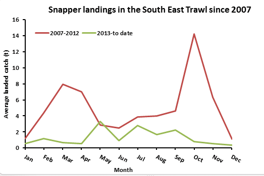 SET snapper catches since the co-management arrangement started have been lower than previous years. Only about 75 tonnes of snapper have been landed during the 4.5 years the arrangement has been in place. Average annual landings have dropped from 60 tonnes before the exemption arrangement to 17 tonnes following it.
